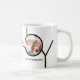 Esta moderna taza de Navidad está decorada con la palabra JOY en un fondo blanco y negro. Personalizable fácil con tu foto y nombre.