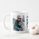 Moderna, moderna, dos fotos mug presentan el guión tipográfico ''mejor bono papá jamás'' en azul marino y negro, 2 fotos y nombres para niños. Perfecto regalo para el padrastro del día del padre, Navidades, etc.