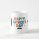 ¡Haz del Día del Padre algo especial con esta taza personalizada de "Feliz Día del Padre"! Con un diseño multicolor vibrante con letras burbujeantes, estrellas divertidas y un bigote elegante, esta taza también incluye dos puntos de fotos de personalizable, perfectos para añadir tus recuerdos favoritos con papá. Ya sea de un hijo, hija o toda la familia, esta taza única es un regalo reconfortante y práctico que tu papá usará y amará todos los días.