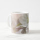 Una taza con una fotografía que muestra una rama de manzano con sus hermosas flores blancas de manzana.