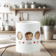 ¡Empieza tu mañana con una sonrisa! Este adorable fotomontaje personalizado presenta tres fotos de niños emparejadas con sus nombres y dulces íconos rojos del corazón, lo que crea un diseño personal y reconfortante. Perfecto como regalo para padres, abuelos o seres queridos, esta taza personalizada es un recordatorio diario de los que más aprecias. Simplemente sube las fotos de tus hijos y personalizar los nombres para crear un conservador significativo y único. ¡Genial por cumpleaños, Día de la Madre, Día del Padre, o simplemente porque sí!