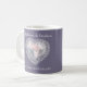 Lace la taza del aniversario de los bodas, personalizar con su propio año de matrimonio, nombres y una foto en el corazón. El ejemplo dice: 13° aniversario de Lace y tus fechas. Lace arte y diseño de efecto cardiaco de Sarah Trett para www.mylittleeden.com en zazzle.