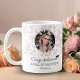 Felicitaciones Trama de Graduación de Patrón Rococo Rosa. Un elegante patrón rococó rosa sobre fondo blanco, gorro de graduación, texto personalizado y una foto en un marco redondo. Añade tu foto y mensaje dentro.