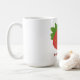 Une illustration de fraise audacieuse et éclatante, dans un style plat et moderne, encadrée dans une forme décorative de badge. Des tons rouge vif rehaussés de pépins jaunes et de feuilles d'un vert frais, accompagnés de la légende en français « Fraîcheur d'été ». Fraîche, ludique et parfaite pour l'été !