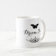 Comienza tu día con una dosis de inspiración y una taza de café en la mano. Esta elegante taza blanca presenta la frase "Dream Big" en una tipografía cursiva negra, rodeada de una mariposa con detalles de lunas en sus alas, simbolizando transformación y el poder de los sueños. Debajo, una delicada flor negra florece, recordando que los grandes sueños también requieren tiempo y cuidado para hacerse realidad.