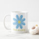 Empieza tu mañana con una sonrisa usando este fresco como una taza de margarita. Con una suave margarita azul con un centro amarillo soleado y las palabras "Fresco como margarita", este alegre diseño floral añade una fresca ráfaga de positividad a su café o té diario.