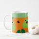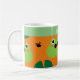 Ranas y jarras de lirio con texto editable. Ranas verdes y toallitas de lirios. Café/té.