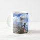 Fubby poppetje die een witte vlag plant omdat hij aan het klimmen is naar de top van de berg. Lijkt ook op de maanlanding. In ieder geval word er een markering gemaakt van een belangrijk punt, hoogte punt in een wandeltocht.