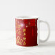 Linternas chinas con fuegos artificiales como fondo con papel dorado cortado de una rata linda + gran dorado 2020, Año dorado de la Rata, saludando "Feliz Año Nuevo" en un ideograma chino y de rata dorada. Diseño en una taza blanca con fondo rojo oscuro y con forma de galardones blancos para rodear la manija de la taza. Tarjeta de saludo, postal, invitaciones y más... Perfecto para el Año Nuevo Chino de la rata 2020.