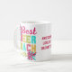 Elegante COACH DE MEJOR COACH DE LA HISTORIA Coffee Mug en tipografía universitaria y colores de verano. El diseño incluye pompas. Hay disponibles regalos y prendas de vestir similares. Ideas de regalo ideales para la temporada animadora para su entrenador de animadores favorito.