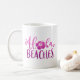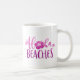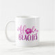Esta divertida taza de café muestra la imagen de texto "Playas Aloha" en un purpurina oscuro rosa y personalizada con tu nombre a un lado, o borra el nombre para tener un aspecto limpio.