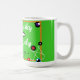 Decoración divertida de Halloween fantasmagórica con nombre familiar en letra fresca. Fondo verde con borde naranja y negro. Somos Quirky y We're Kooky está escrito en escritura blanca. Arañas blancas y negras y ojos geométricos y círculos coloridos. Cita original y diseño artístico de TamiraZDesigns.