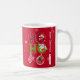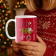 Famoso HO HO HO Retro Navidades Holiday Coffee Mug, presenta una tipografía retro escrita a mano "HO HO HO HO" con personajes de dibujos animados de Navidades: Santa claus, hombres de nieve y oso de peluche, aislados en un fondo rojo con copos de nieve blancos. *** Haga clic en el botón de edición/personalización para personalizar de este diseño con su texto o nombre personal. Felices fiestas!