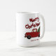 Funny mug with old red truck and Christmas tree . Old vintage Chevy truck hauling a Christmas tree. Fun coffee cup design for the holidays. Personalize with your own custom text and colors.