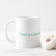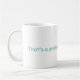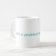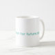 Lema de la vida "¡Ese es un problema para mí en el futuro!" escrito en una taza de café con texto de color verde azulado.