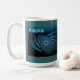 Una imagen fractal de tono azul que se asemeja a un grupo de ballenas en espiral bajo el hielo polar; tal vez ballenas beluga o minke que frecuentan los polos. El texto que dice "Alaska" aparece en azul brillante y blanco.