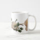 Una taza envuelta en una fotografía de una hebra de ajo.