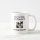 Imagen divertida y humorística del tazón de café con "Nuestro club de gatos tiene estándares - no se permiten perros". Es un diseño alegre, perfecto para los amantes de los gatos que disfrutan un poco de humor sarcástico, "gatos gobiernan, perros babosos".