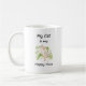 Esta taza de café presenta un ilustracion encantador que nos recuerda que la felicidad a menudo proviene de los momentos más simples de la vida, celebrando la alegría, el confort y la satisfacción en los placeres cotidianos.