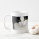 El gato con los ojos de oro ricos y la capa blanco y negro larga entonces fue fotografiado pintó digital. Los ojos de perforación son irresistibles. Gran idea para un regalo para cualquier amante animal.
