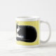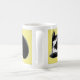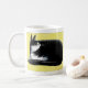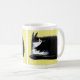 Un estilizado, color, dibujo del dibujo animado de un gato del smoking, se acumuló de muchas líneas finas tramadas. El gato se encrespa para arriba, remetido adentro, él es cola a través de la base del dibujo. El fondo en esta variación de la impresión es amarillo.