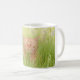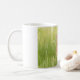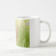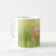Gato dichosamente feliz en la hierba de la primavera - un gatito del jengibre que disfruta de la vida que se relaja. ¡Una taza impresionante para todos los amantes del gato!