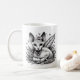 Despierta sus sentidos con el encanto de un dulce gato Sfinx rodeado de plumas y mariposas en esta encantadora taza de café. El dibujo en tinta blanca y negra aporta un toque de elegancia a su ritual matutino, ya que la musa felina y sus delicados compañeros adornan el lienzo de cerámica.