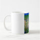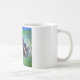 Un gato negro con ojos muy intensos mirando fijamente hacia el marco, rodeado de colores surrealistas entre la hierba y la hierba.