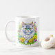 Un gato persa blanco lindo rodeado de flores amarillas y rosadas color agua botánica arte ai.
