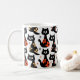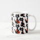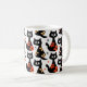 Un juego de gatos negros decorados con flores audaces y coloridas en tonos rojos, naranjas y beige. El fondo es blanco, lo que contrasta con las figuras del gato oscuro. Ideal para un lindo proyecto de Halloween o cualquier otra época del año