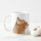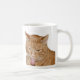 gato de tabby anaranjado que hace que la lengua habla en una taza de café/una taza