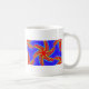 Un diseño o patrón geométrico atractivo predominantemente en tonos rojos y azules, pero también con amarillo, cian, púrpura y verde.