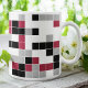 Esta hermosa taza presenta un divertido patrón geométrico colorido en Viva Magenta, negro, gris y blanco. Los cuadrados están coloreados en un patrón aleatorio y se pueden editar los colores en la herramienta Diseño.