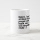 Jumbo Algunos días, una taza de jue de tamaño normal no sirve. Cuando necesites un toque extra de cafeína, saca esta taza gigante de café de Zazzle. Tiene capacidad suficiente para una medida Venti (20 onzas). ¡Y también la pudes usar para tomar sopa, cereales o incluso helado! Esta taza gigante cuenta con un asa en forma de "C" para mayor comodidad. Dimensiones: Altura: 4,5" Diámetro: 3,9" Capacidad: 20 onzas Caja fuerte de microondas y lavavajillas Construcción fuerte, cerámica Cumple o excede los requisitos de la FDA para el diseño de seguridad de alimentos y bebidas Consejo: Para garantizar la impresión de máxima calidad, tenga en cuenta que el área de diseño de personalizables de este producto mide 4" de alto x 10,5" de ancho