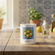 A bright cup with Amalfi lemons, painted in watercolor. A scent of sunshine and the seaside in every morning coffee. Personalize this mug with your name.