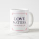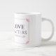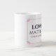 Jumbo Algunos días, una taza de jue de tamaño normal no sirve. Cuando necesites un toque extra de cafeína, saca esta taza gigante de café de Zazzle. Tiene capacidad suficiente para una medida Venti (20 onzas). ¡Y también la pudes usar para tomar sopa, cereales o incluso helado! Esta taza gigante cuenta con un asa en forma de "C" para mayor comodidad. Dimensiones: Altura: 4,5" Diámetro: 3,9" Capacidad: 20 onzas Caja fuerte de microondas y lavavajillas Construcción fuerte, cerámica Cumple o excede los requisitos de la FDA para el diseño de seguridad de alimentos y bebidas Consejo: Para garantizar la impresión de máxima calidad, tenga en cuenta que el área de diseño de personalizables de este producto mide 4" de alto x 10,5" de ancho