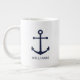 Taza De Café Gigante Ancla azul de la Marina Náutica moderna con nombre