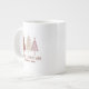 El diseño de la taza de café gigante de temporada presenta una elegante exhibición de árboles de Navidad nevados en rojo, dorado y rosa sobre un fondo transparente. Debajo de los árboles, la sección "Feliz Navidad" se presenta en tipografía clásica elegante. Agrega un nombre personalizado o línea de texto personalizado en letra roja coincidente con la plantilla fácil de usar. Por favor, envía un mensaje o correo electrónico a beachpausedesigns@gmail.com para más personalizaciones.