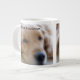 ¡Beba su café o té fuera de esta taza enorme hermosa! Ofrece un tiro principal suave soñador de un golden retriever adorable en fotografía a todo color. Utilice nuestro texto que lea, "golden retriever", personalizar con su propio nombre o texto o cancelación para ningún texto. ¡Perfeccione el regalo para los amantes del perro! www.kdstewart.net