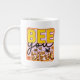 Jumbo Algunos días, una taza de jue de tamaño normal no sirve. Cuando necesites un toque extra de cafeína, saca esta taza gigante de café de Zazzle. Tiene capacidad suficiente para una medida Venti (20 onzas). ¡Y también la pudes usar para tomar sopa, cereales o incluso helado! Esta taza gigante cuenta con un asa en forma de "C" para mayor comodidad. Dimensiones: Altura: 4,5" Diámetro: 3,9" Capacidad: 20 onzas Seguridad de microondas y lavavajillas Construcción fuerte, cerámica Cumple o excede los requisitos de la FDA para la seguridad de los alimentos y bebidas Impreso a petición en Reno, NV Designer Tip: Para garantizar la impresión de máxima calidad, tenga en cuenta que el área de diseño de personalizable de este producto mide 4" de alto x 10,5" de ancho + Más