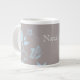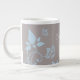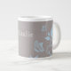 Mugre Jumbo Floral Floral de Mariposa dulce y delicado con un fondo gris turbio y turbio, mariposas azules claras y adornos de viñas florales. Este elegante tazón floral es perfecto para tomar su bebida caliente favorita con un toque de chispa. Fácil de personalizar, simplemente agregue el texto personalizado de su elección en los campos de texto proporcionados. Haga clic en el botón "Personalizar" para encontrar opciones de personalización adicionales.
