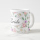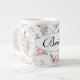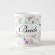 La taza de jumbo de novia se muestra en un texto rosa de bonito floral, Bride. Personalizar este artículo o compra tal cual. Imagen de stock freepik.com