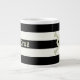 ¡Ahoy mateys! Empecemos un viaje para disfrutar de una taza de café humeante en esta adorable taza de café a rayas negras y crema adornada con un cráneo y unos huesos cruzados. ¿Y la mejor parte? Puedes personalizarlo con tu propio nombre. ¡Vamos a navegar a la felicidad cafetera!