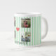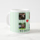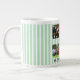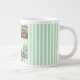 Celebra tus momentos favoritos con este colage de la familia de rayas pastel de celadón, ¡una taza de café gigante**! Con un suave fondo a rayas y múltiples manchas fotográficas de personalizable, esta taza sobredimensionada es la manera perfecta de tomar el café matutino mientras se aprecian los recuerdos familiares. Su gran tamaño lo convierte en el lugar ideal para las mañanas, las noches más acogedoras o para aquellos que necesiten una cafeína suplementaria.