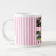 Celebra tus momentos favoritos con este collage de la familia de lavanda rayado rosa y el tazón de café gigante**! Con un suave fondo a rayas y múltiples manchas fotográficas de personalizable, esta taza sobredimensionada es la manera perfecta de tomar el café matutino mientras se aprecian los recuerdos familiares. Su gran tamaño lo convierte en el lugar ideal para las mañanas, las noches más acogedoras o para aquellos que necesiten una cafeína suplementaria.
