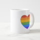 Esta obra de arte presenta un colorido corazón a rayas arco iris.