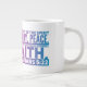 Jumbo Algunos días, una taza de jue de tamaño normal no sirve. Cuando necesites un toque extra de cafeína, saca esta taza gigante de café de Zazzle. Tiene capacidad suficiente para una medida Venti (20 onzas). ¡Y también la pudes usar para tomar sopa, cereales o incluso helado! Esta taza gigante cuenta con un asa en forma de "C" para mayor comodidad. Dimensiones: Altura: 4,5" Diámetro: 3,9" Capacidad: 20 onzas