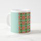Taza De Café Gigante Custom Red Folk Art Flower & Leaf Pattern