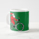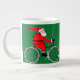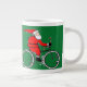 Creative cycling themed holiday gift Christmas mug featuring funny Santa cyclist riding a bike.