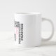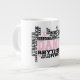 Jumbo Algunos días, una taza de jue de tamaño normal no sirve. Cuando necesites un toque extra de cafeína, saca esta taza gigante de café de Zazzle. Tiene capacidad suficiente para una medida Venti (20 onzas). ¡Y también la pudes usar para tomar sopa, cereales o incluso helado! Esta taza gigante cuenta con un asa en forma de "C" para mayor comodidad. Dimensiones: Altura: 4,5" Diámetro: 3,9" Capacidad: 20 onzas Caja fuerte de microondas y lavavajillas Construcción fuerte, cerámica Cumple o excede los requisitos de la FDA para el diseño de seguridad de alimentos y bebidas Consejo: Para garantizar la impresión de máxima calidad, tenga en cuenta que el área de diseño de personalizables de este producto mide 4" de alto x 10,5" de ancho
